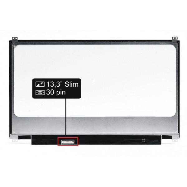 Hauptdaten: glänzend Oberfläche, Größe 13,3", Auflösung 1920x1080 FHD, LED Hintergrundbeleuchtung, 30 Pin LED Verbindungsstecker am Display links unten (beim Blick auf die Display-Rückseite).