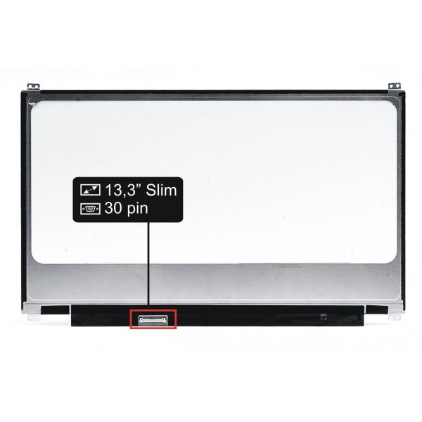 Hauptdaten: matte Oberfläche, Größe 13,3", Auflösung 1920x1080 FHD, LED Hintergrundbeleuchtung, 30 Pin eDP LED Verbindungsstecker am Display rechts unten (beim Blick auf die Display-Rückseite).